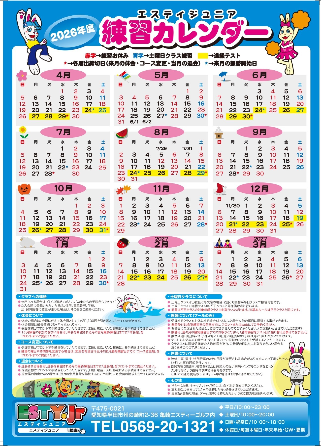 ※その他、年末年始・GW・夏季・施設点検日・イベント実施日